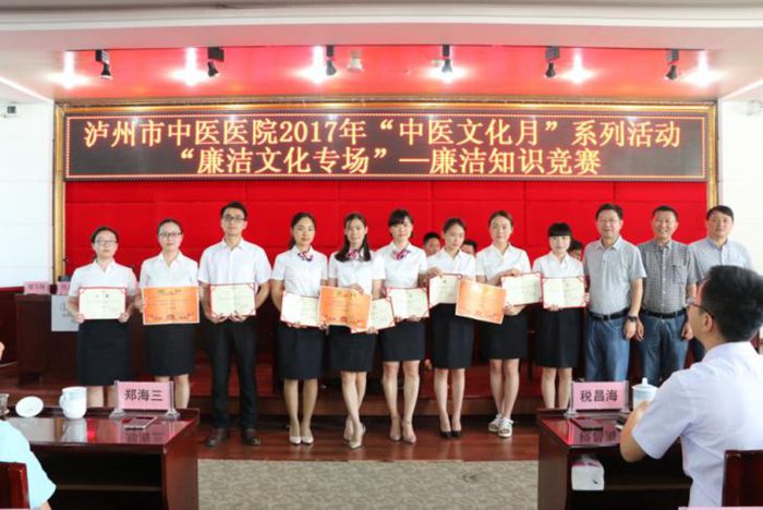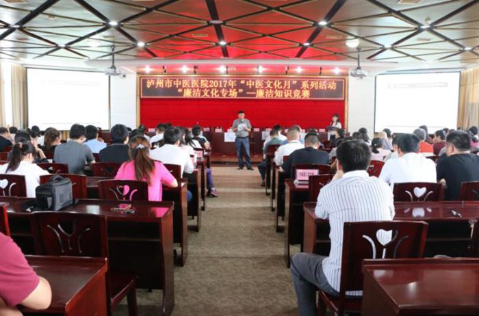 為進(jìn)一步加強(qiáng)醫(yī)院黨風(fēng)廉潔建設(shè)和醫(yī)德醫(yī)風(fēng)建設(shè),2017年5月27日下午,瀘州市中醫(yī)醫(yī)院在門診11樓學(xué)術(shù)廳開展 “中醫(yī)文化月”系列活動(dòng):“廉潔文化專場(chǎng)”——廉潔知識(shí)競(jìng)賽,市衛(wèi)生計(jì)生委監(jiān)察室主任稅昌海到場(chǎng)指導(dǎo)。醫(yī)院全體中層以上領(lǐng)導(dǎo)干部、全體黨員參加了此次活動(dòng)。