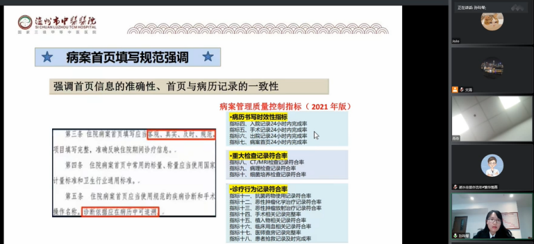 瀘州市中醫(yī)病案質(zhì)量控制中心(以下簡(jiǎn)稱質(zhì)控中心)11月15日,以線上會(huì)議的方式順利召開省級(jí)繼續(xù)教育項(xiàng)目—《基于DIP下的中醫(yī)病案管理專題培訓(xùn)班》。本次會(huì)議,我們榮幸的邀請(qǐng)到了四川大學(xué)華西醫(yī)院病案科莫春梅科長(zhǎng)、成都大學(xué)附屬醫(yī)院原質(zhì)控部楊建南主任、四川省中醫(yī)病案質(zhì)控中心劉鵬主任、瀘州市中醫(yī)醫(yī)院張帆主任等為我們進(jìn)行了“醫(yī)保DIP分值付費(fèi)、績(jī)效考核、中醫(yī)病歷書寫、病案首頁(yè)填寫規(guī)范、編碼主導(dǎo)詞填寫”等課程的精彩授課。
