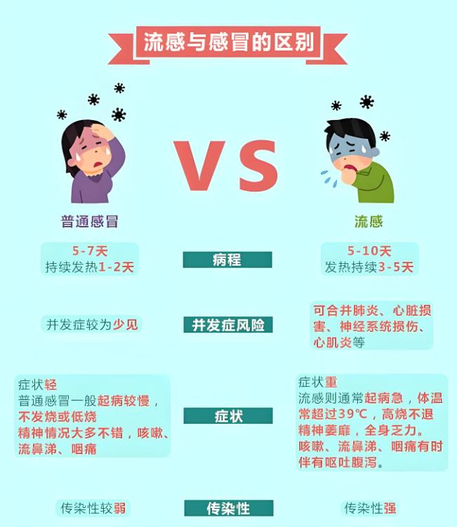 流感癥狀比普通感冒更加嚴(yán)重,主要表現(xiàn)為頭痛、高熱、關(guān)節(jié)酸痛、乏力等,普通感冒的癥狀相對(duì)較輕,主要表現(xiàn)咽喉痛、流涕、咳嗽等不適。流感的傳染性更強(qiáng),更容易在人群中傳播,流感嚴(yán)重時(shí)可引起病毒性肺炎,還能并發(fā)細(xì)菌性肺炎、中耳炎、心肌炎等嚴(yán)重的并發(fā)癥,普通感冒一般很少發(fā)生嚴(yán)重并發(fā)癥。