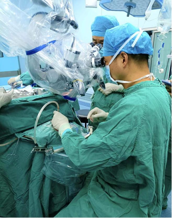 神經(jīng)外科主任謝勇與華西教授行手術(shù)治療