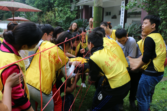 參加人員被分為紅隊和黃隊兩支團隊,通過集體討論,確定了各自的隊名、隊長和口號?;顒又?,大家相互鼓勵、相互幫助、團結(jié)一心、共同完成了破冰、群龍取水、穿越電網(wǎng)、信任背摔、 挑戰(zhàn)越障等一系列拓展項目,體現(xiàn)了濃厚的集體歸屬感和團隊意識。每輪項目結(jié)束后,大家都會在一起相互商討、爭相發(fā)言,分享親身體驗的過程和成功的喜悅,尤其是學會了如何去溝通,如何去克服心理障礙,如何突破自我去釋放正能量戰(zhàn)勝困難。