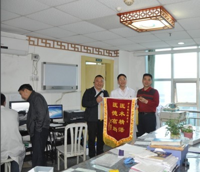 患者家屬為內(nèi)一科朱彬醫(yī)生送來錦旗一面,感謝他對患者的精心治療和悉心照顧。